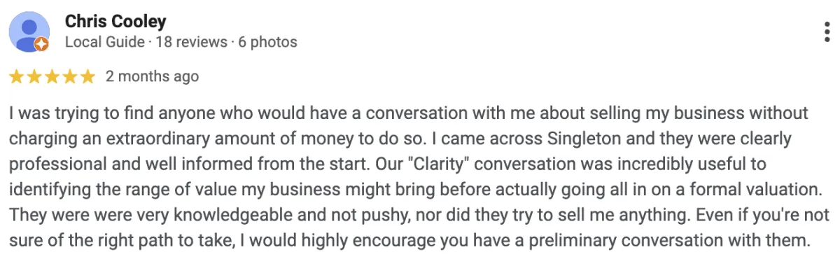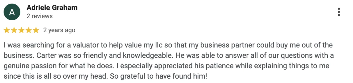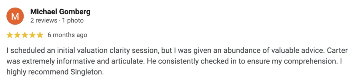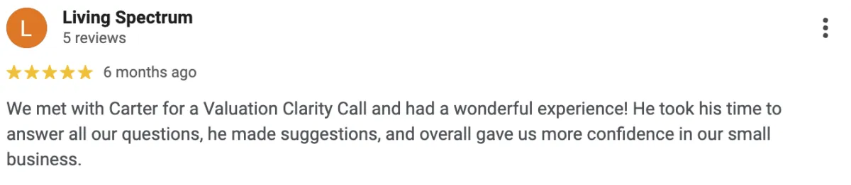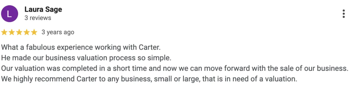 Step 1: Submit your information in the form on this page. This will take you to a scheduling page where you can book a no obligation, one-on-one with our Managing Director (if the times available don't suit your schedule someone from our office will reach out directly to accommodate what's best for you). On this call we will learn more about what you need regarding the business valuation and if it is something we can complete for you.